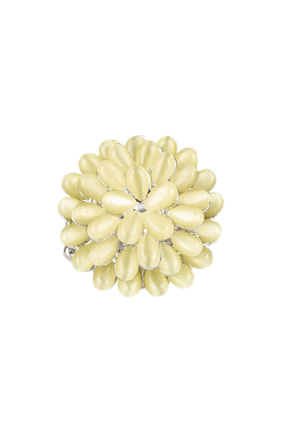 Row after row of teardrop cat's eye stones stack into a blast of yellow petals atop the finger, creating a whimsical blossom. Features a stretchy band for a flexible fit.